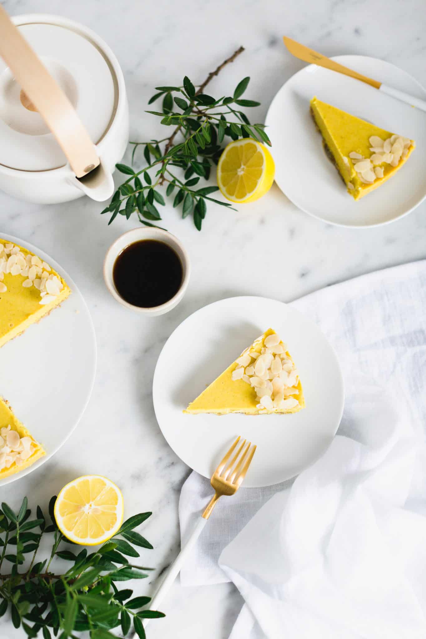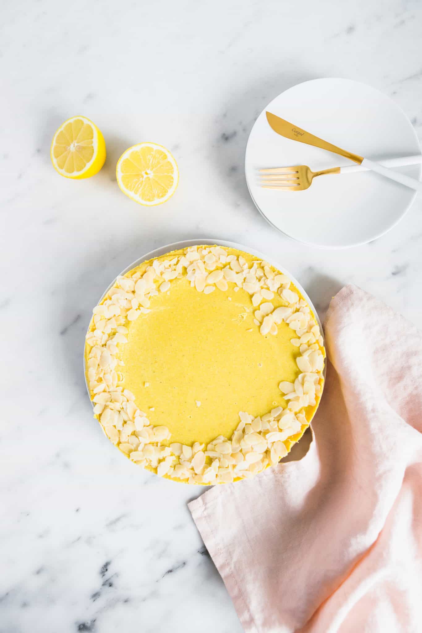 Een lekkere vegan citroentaart met de structuur vaan een cheesecake. Lekker fris en luchtig, heerlijk