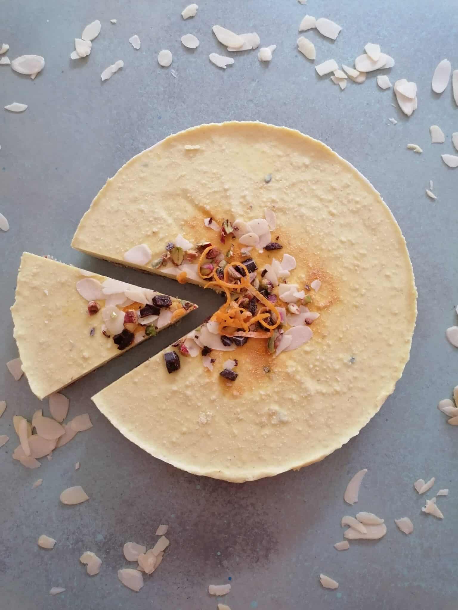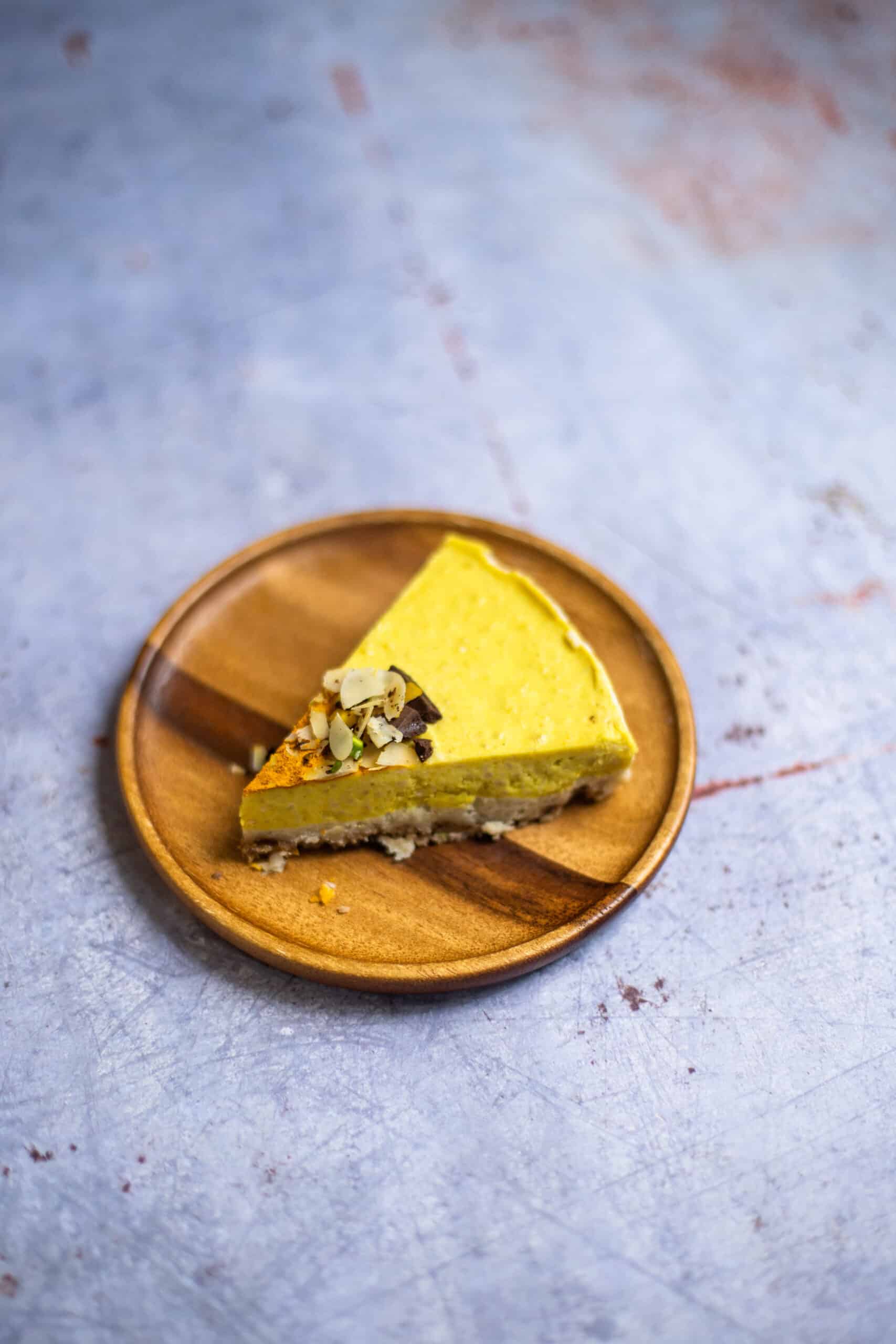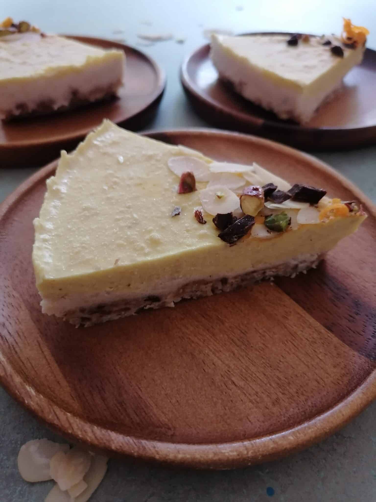 Deze vegan passievrucht-taart is lekker fris van smaak. Deze taart is de ultieme smaakbom met ingrediënten zoals appelsien, mango, limoen, pistache, chocolade en natuurlijk passievrucht. De bodem bevat een heerlijke vanillesmaak. Je serveert deze taart best koel.
