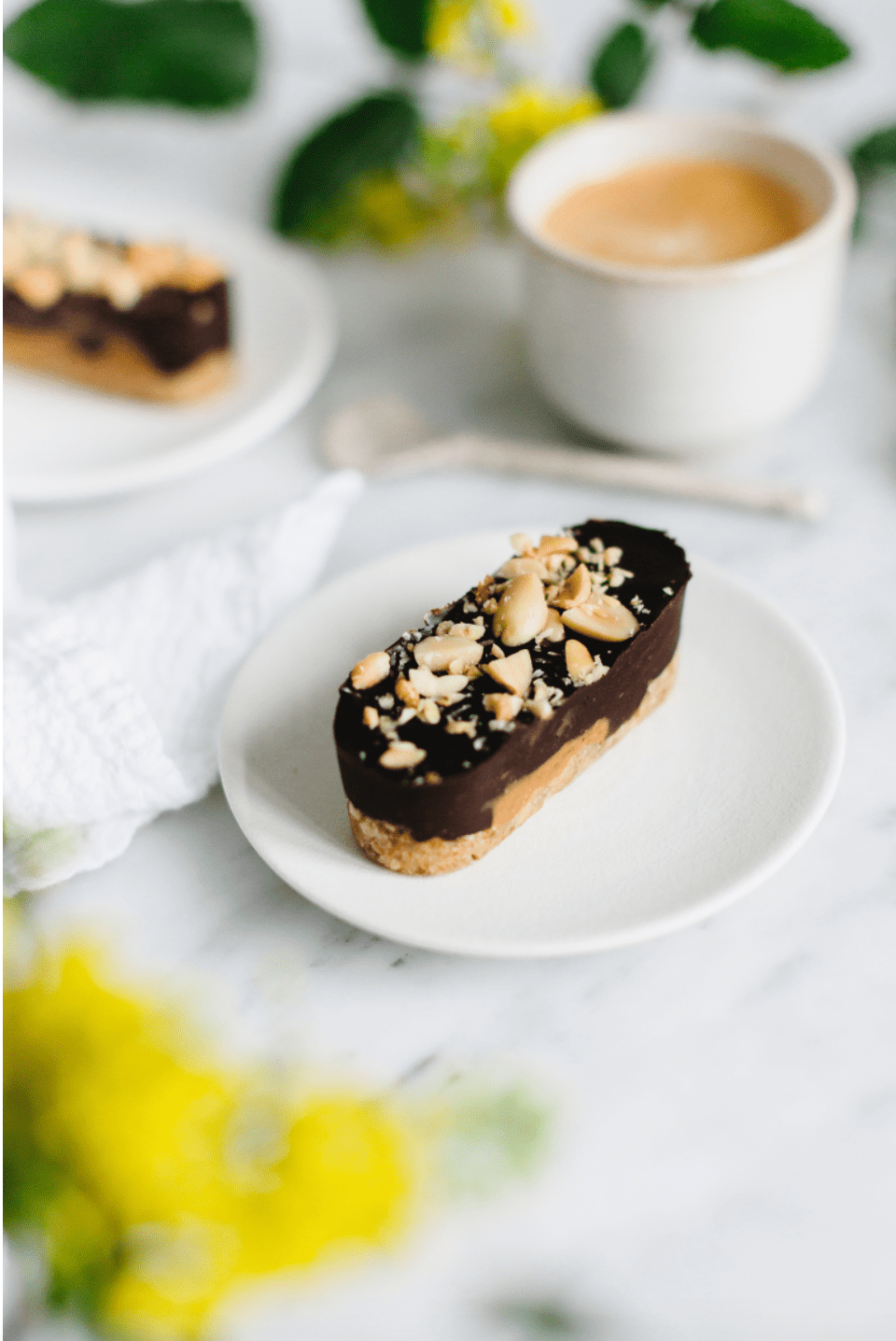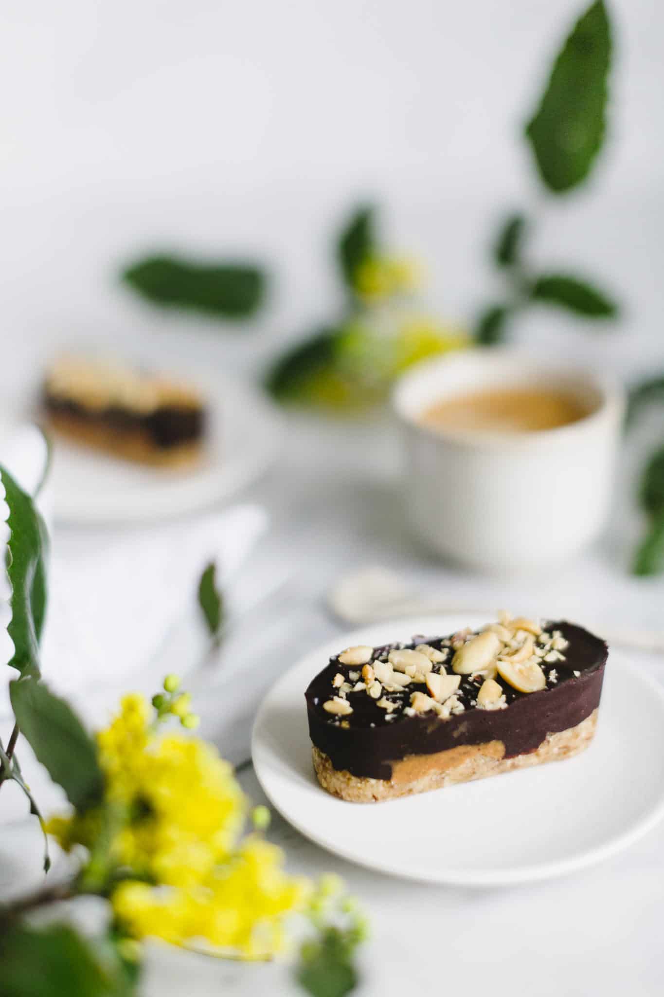 Deze vegan pindareep is zoals een lekkere ‘Snickers’ maar dan veel gezonder. Een mix van pinda en chocolade.