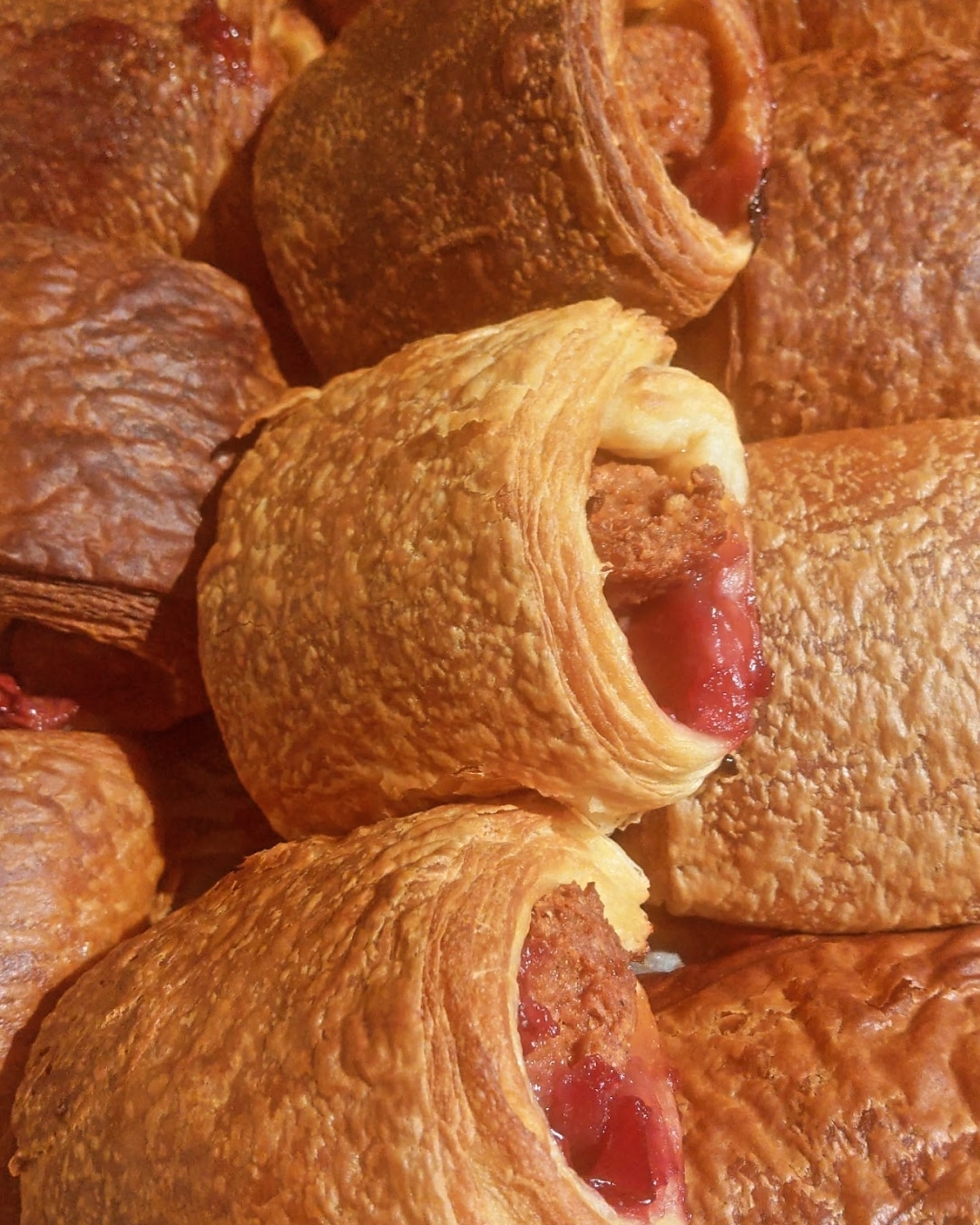 Een spelt worstenbroodje (vegan uiteraard) om duimen en vingers bij af te likken, in samenwerking met Nona's Bakery.